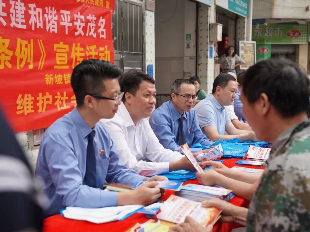 4月14日上午,茂名市人民检察院第一检察部主任陈伟涛等一行13人,与我院党组成员、副检察长李杰等一行7人到新坡镇开展“增强国家安全意识 构建和谐稳定社会”国家安全教育日法治宣传。