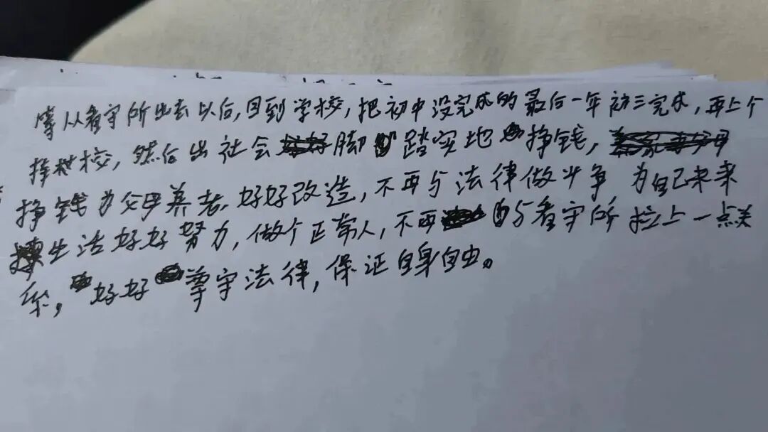 在心得交流环节,在押未成年人主动敞开心扉,写下了: