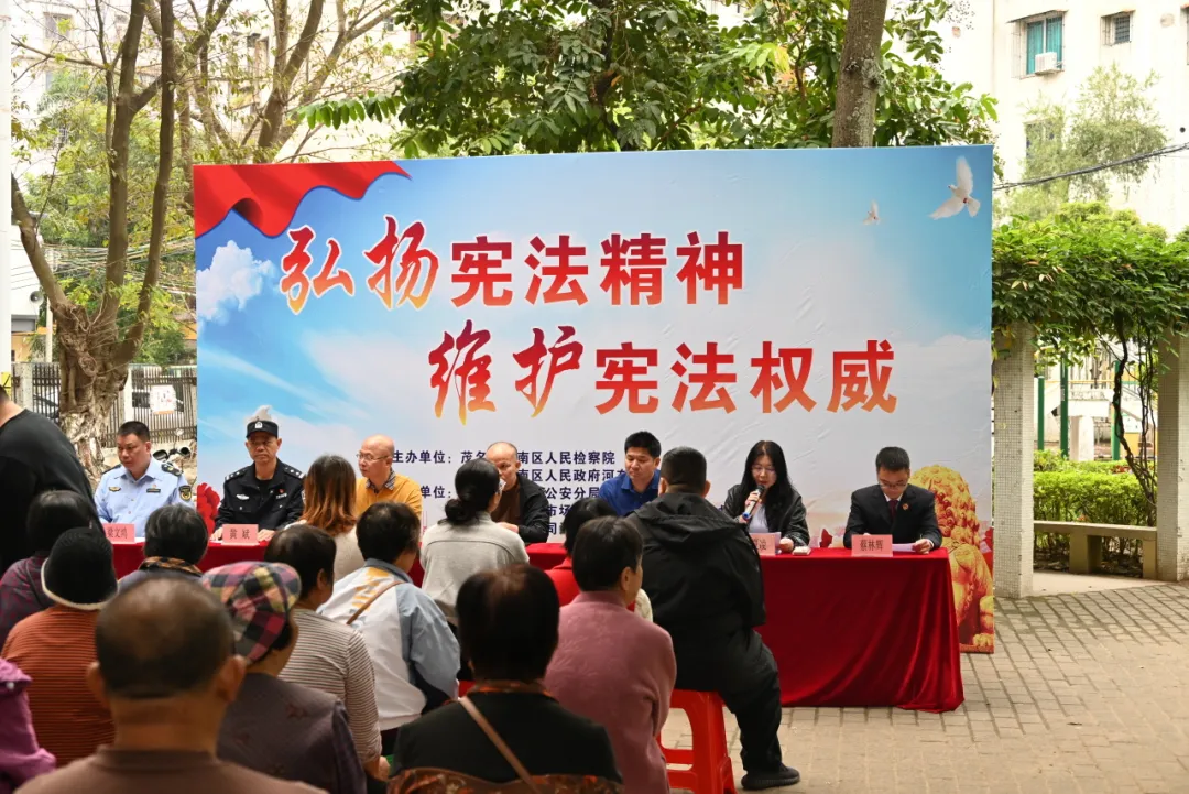 2025年12月4日是第十二个国家宪法日。为深入学习宣传习近平法治思想,大力弘扬宪法精神、维护宪法权威,茂南区检察院联合河东街道、河东派出所、河东市监所、河东司法所等部门,共同走进河东街道方兴公园开展宪法日主题宣传活动。