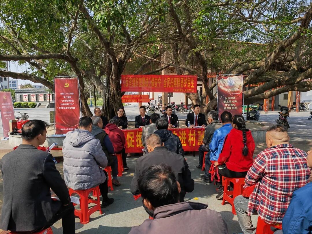 日前, 我院第一检察部、第二检察部、机关党委、派驻镇盛检察室联合深入该村开展“党建引领促振兴,普法进村惠民生”乡村振兴检察行活动,把“微宣讲”课堂搬到田间地头,与驻村第一书记、村委干部携手,以“党建+法治”形式推动党的“好声音”飞入寻常百姓家,努力为乡村振兴提供法律服务和法治保障。