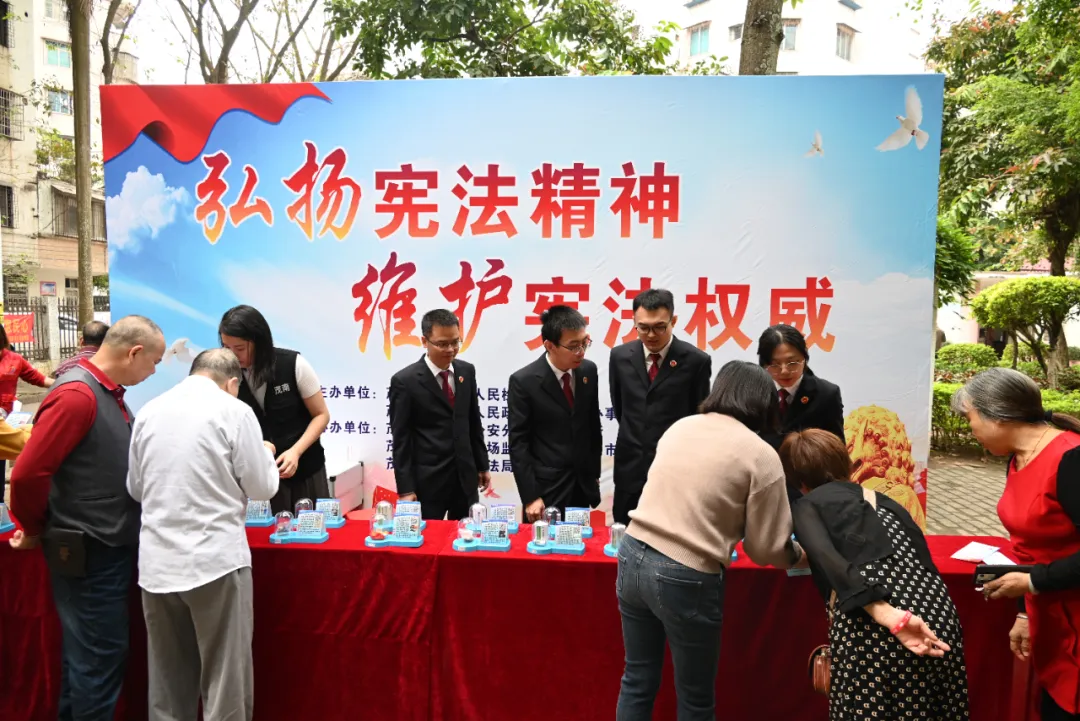 2025年12月4日是第十二个国家宪法日。为深入学习宣传习近平法治思想,大力弘扬宪法精神、维护宪法权威,茂南区检察院联合河东街道、河东派出所、河东市监所、河东司法所等部门,共同走进河东街道方兴公园开展宪法日主题宣传活动。